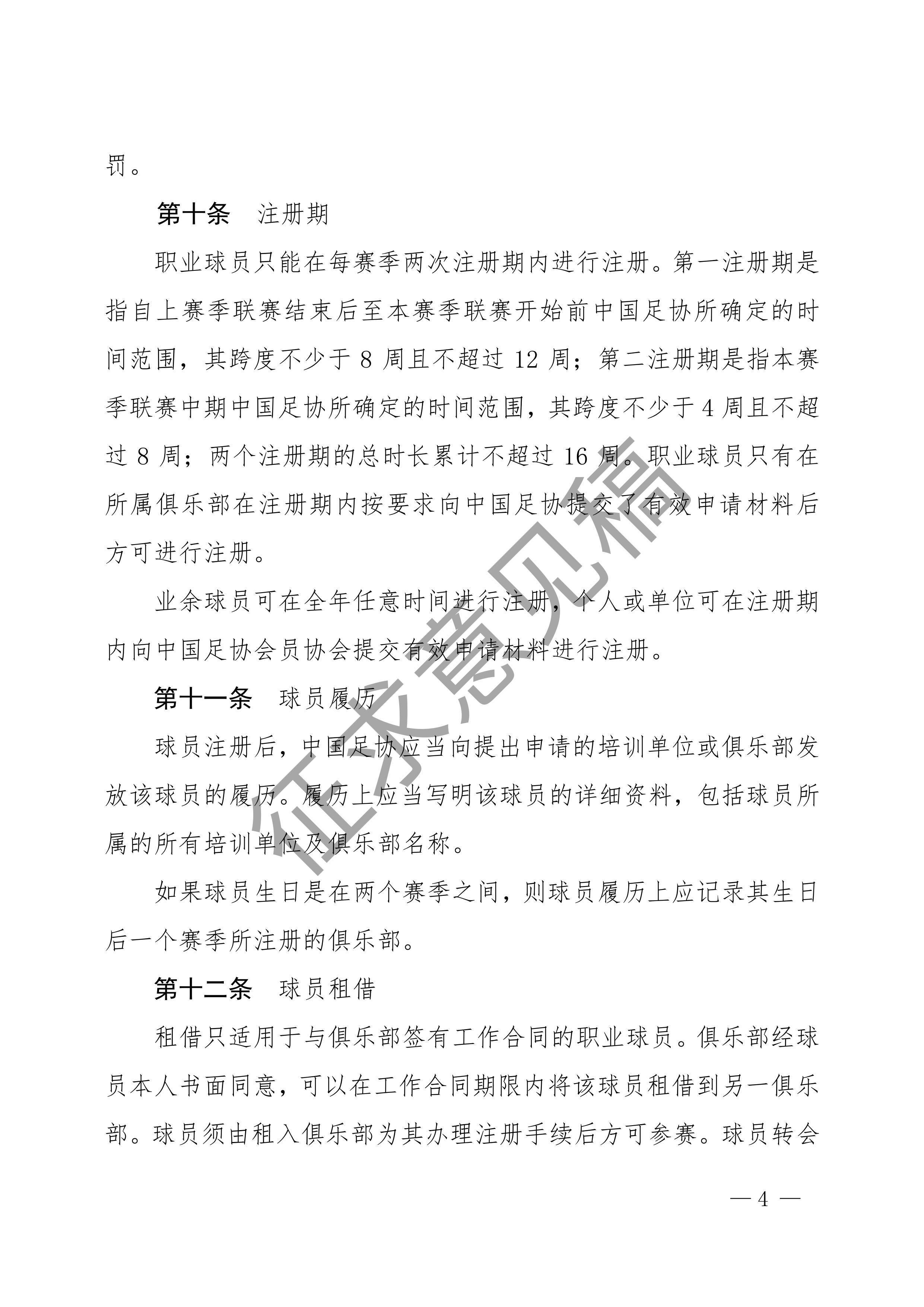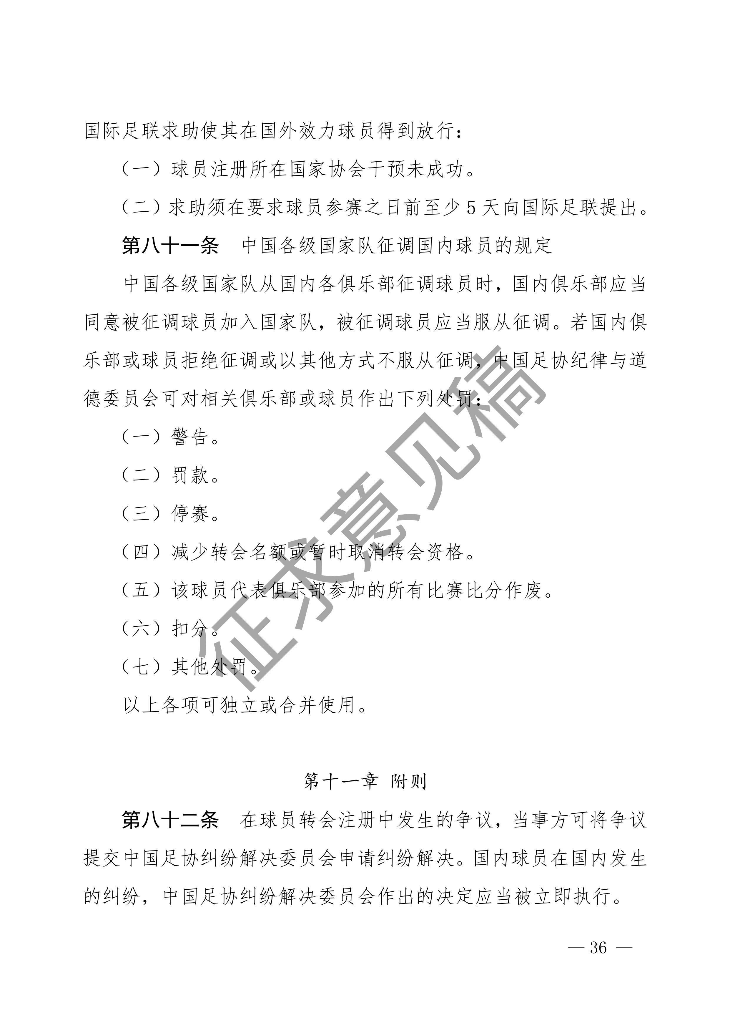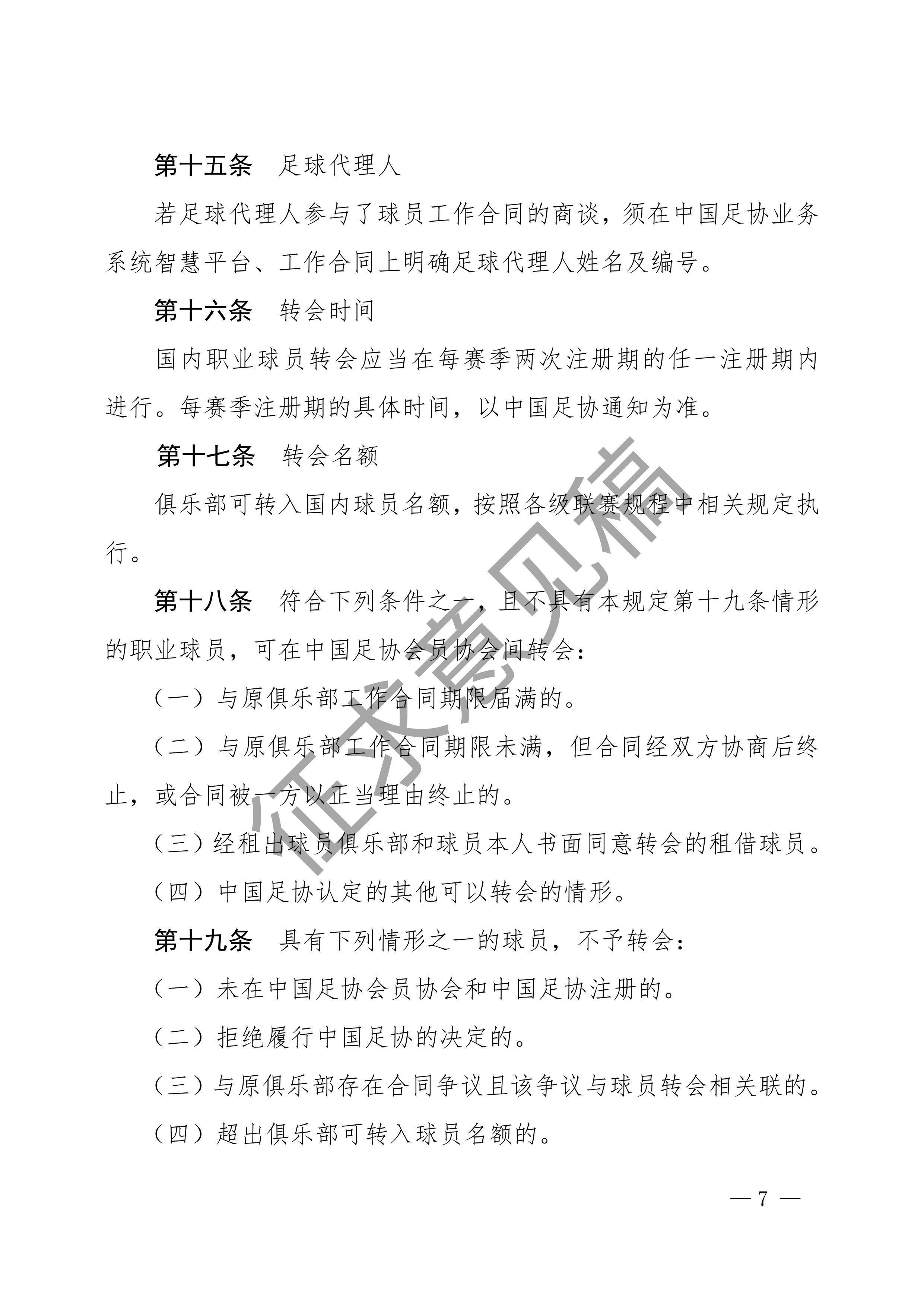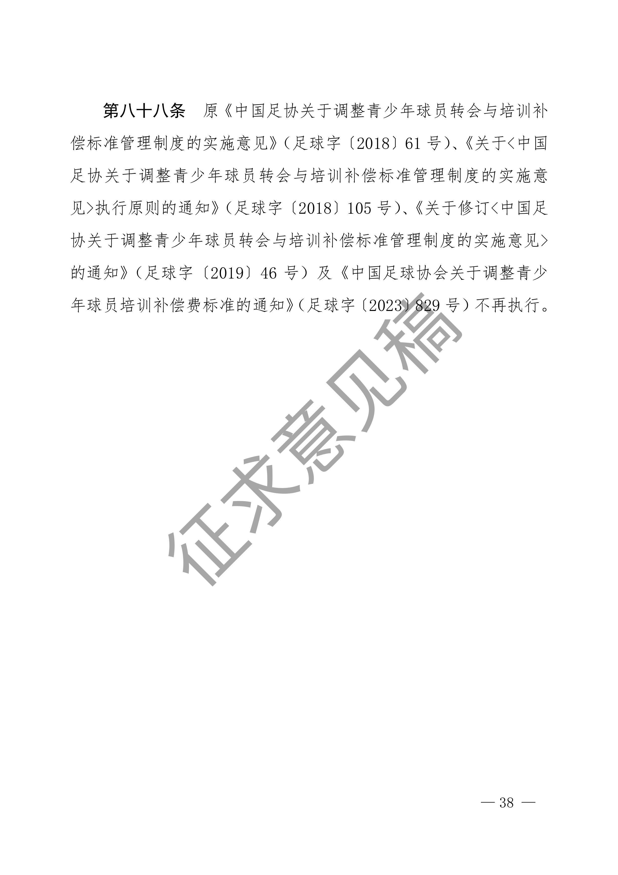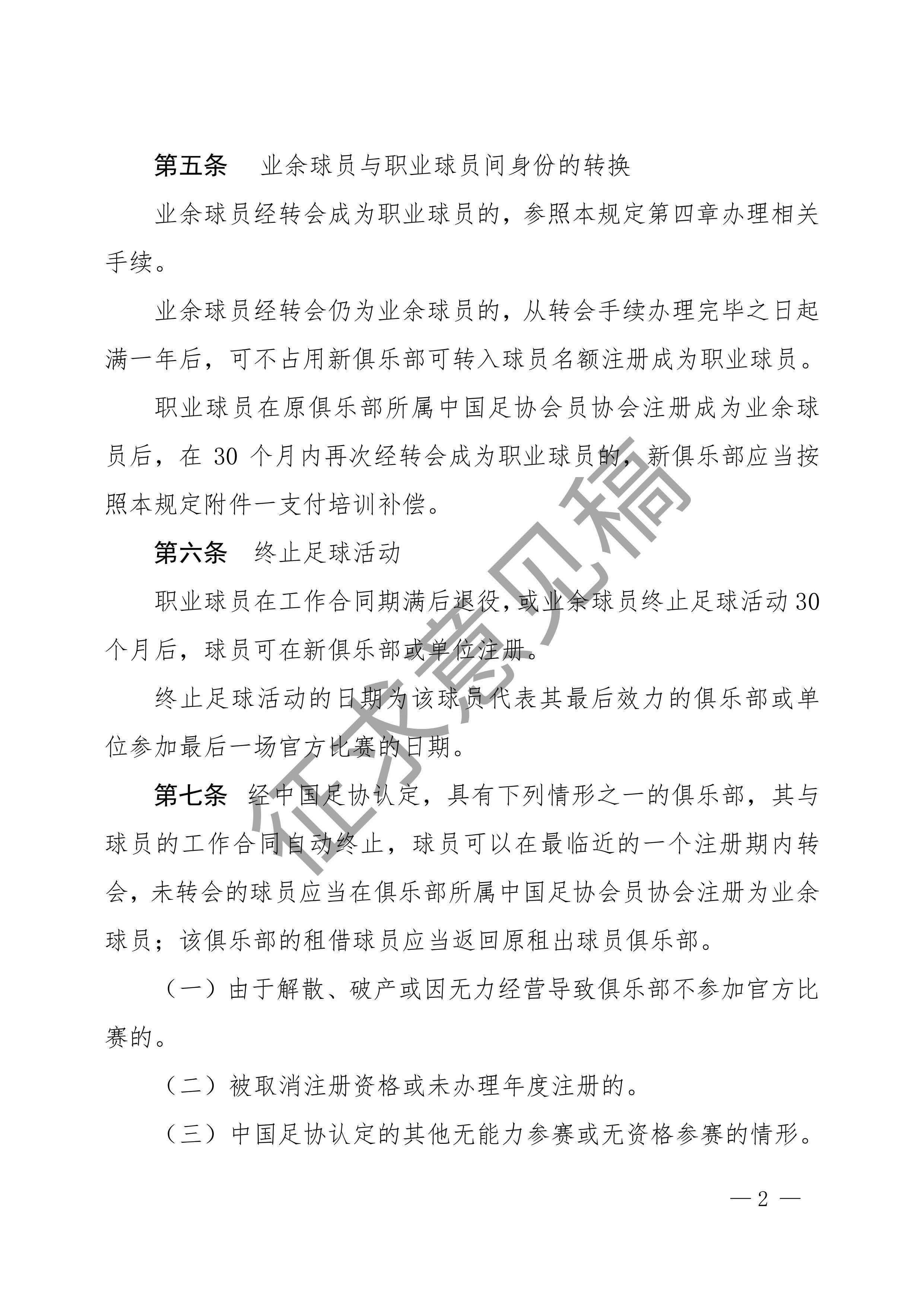 中國(guó)足球協(xié)會(huì)球員身份與轉(zhuǎn)會(huì)管理規(guī)定征求意見(jiàn)稿
