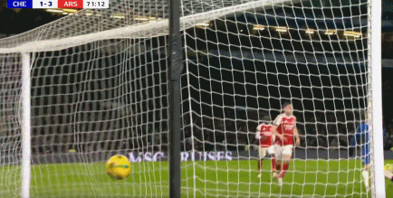 第49分鐘,羅伯特-桑切斯撲救失誤,哲凱賴什笑納大禮破門,阿森納2-0!