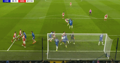 第7分鐘,賴斯角球助攻,本-懷特頭槌破門,阿森納反客為主1-0!