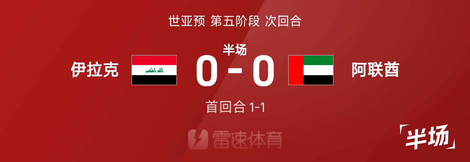 雷速體育11月19日訊 26賽季世亞預第五階段次回合,伊拉克迎戰(zhàn)阿聯(lián)酋。半場戰(zhàn)罷,雙方比分暫為伊拉克0-0阿聯(lián)酋。