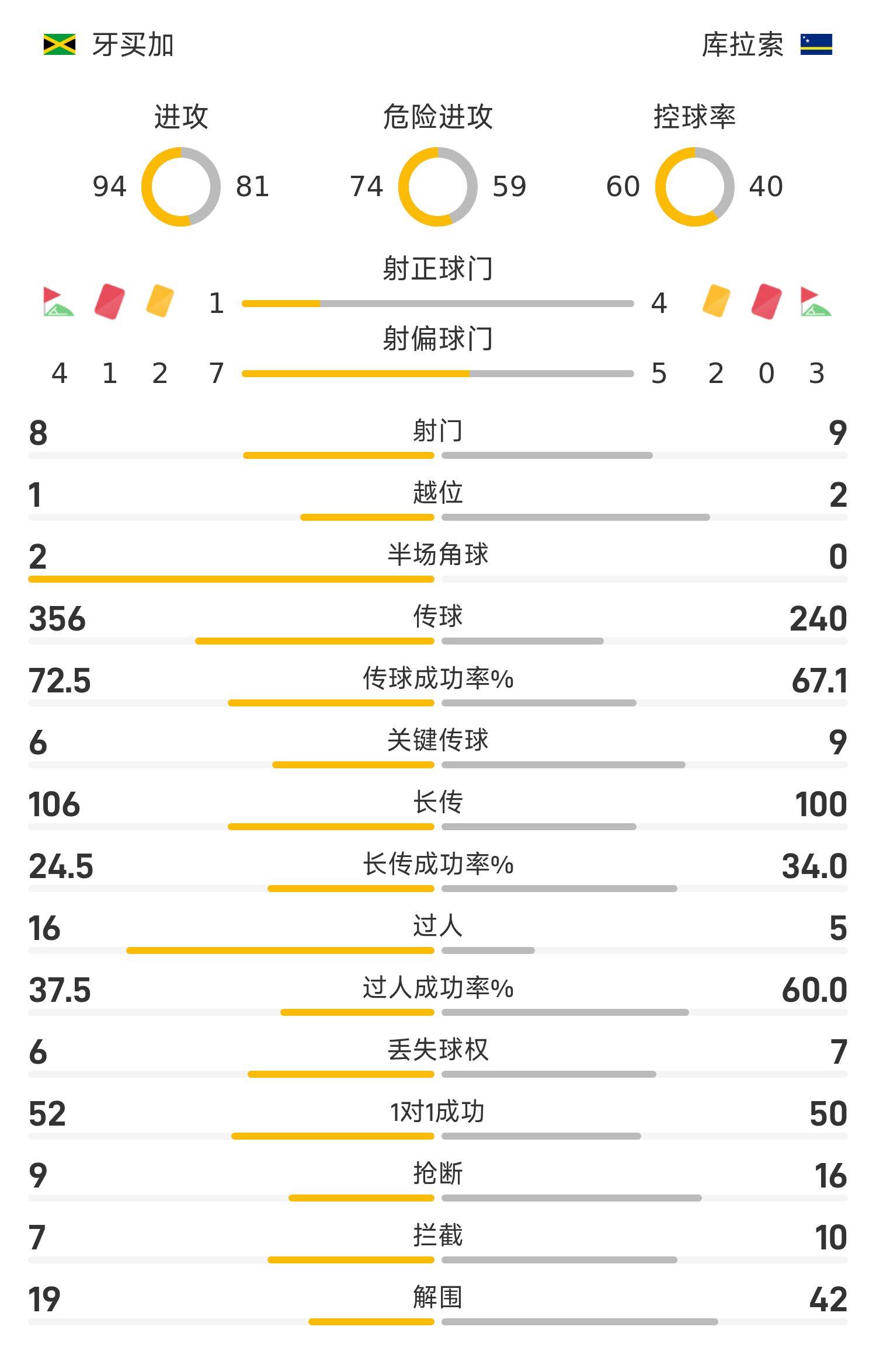 90’拉塞爾踩踏犯規(guī)被罰下,雙方發(fā)生肢體沖突,牙買加少踢一人
