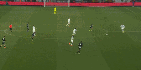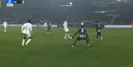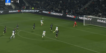 第33分鐘,埃莫森直塞,哈米德-特拉奧雷破門再下一城,馬賽3-0昂熱