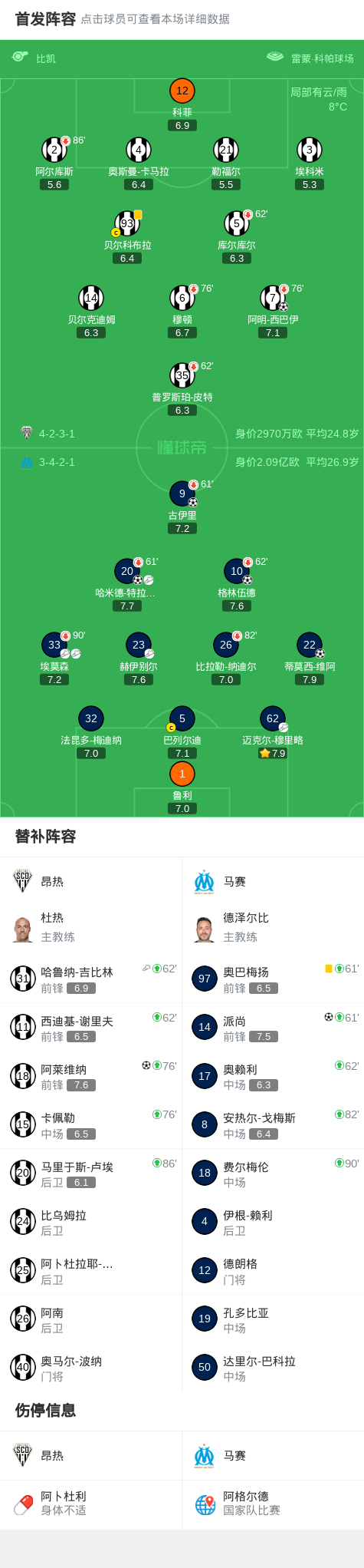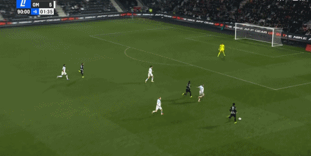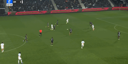第33分鐘,埃莫森直塞,哈米德-特拉奧雷破門再下一城,馬賽3-0昂熱
