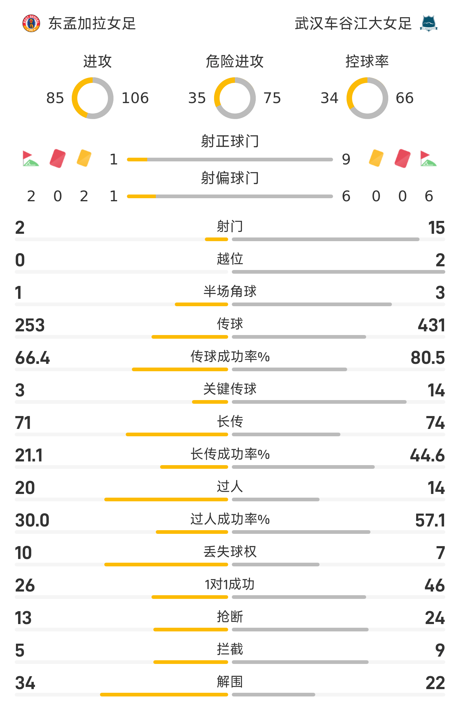 雷速體育11月20日訊 25/26賽季女亞冠聯(lián)小組賽B組第2輪,武漢車(chē)谷江大女足2-0戰(zhàn)勝東孟加拉女足,獲新賽季亞冠首勝,小組賽前2輪1勝1平。全場(chǎng)比賽,王霜上演梅開(kāi)二度。