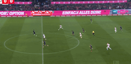 第41分鐘,格納布里失誤被斷,馬伊納帶球反擊遠射破門!科隆1-0拜仁