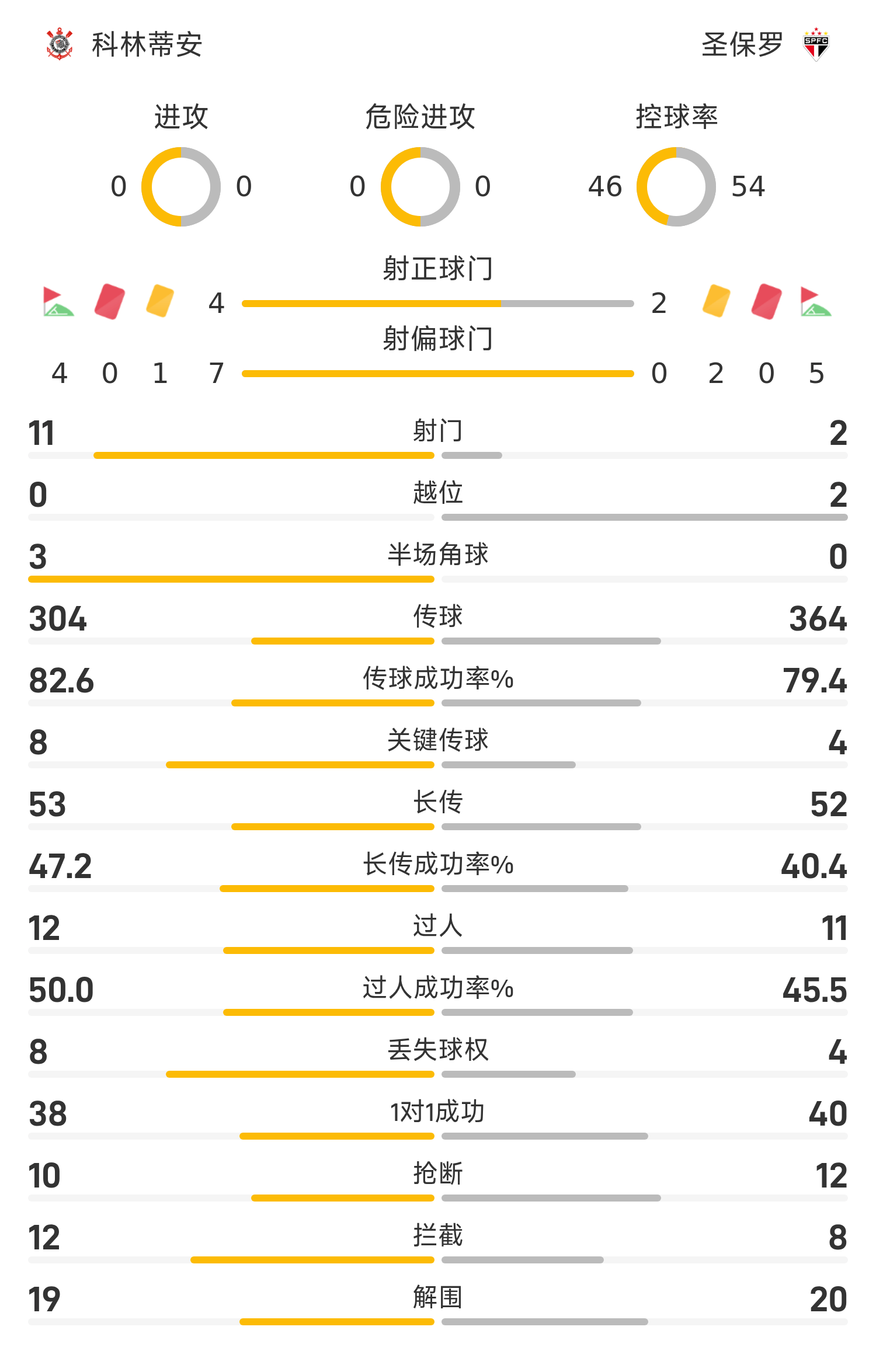 科林蒂安首發(fā)陣容:40-隆戈、13-恩里克、26-安吉萊利、2-馬特烏西尼奧、21-馬圖斯、47-喬卡、19-卡里略(63’29-維蒂尼奧)、70-馬丁內(nèi)斯(81’49-安德烈)、27-比東、9-阿爾貝托(90’11-羅梅羅)、56-內(nèi)高(63’10-德佩)