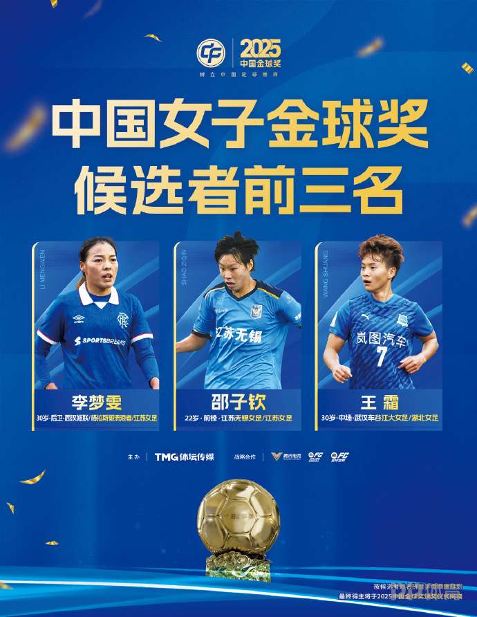 李夢(mèng)雯、邵子欽和王霜將爭(zhēng)奪中國(guó)女子金球獎(jiǎng)