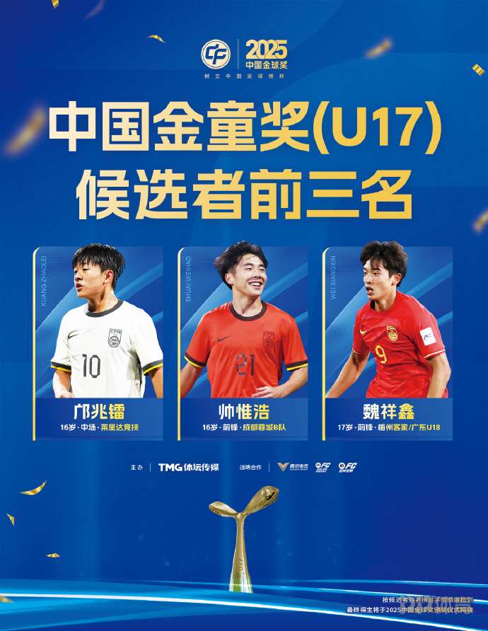 中國(guó)金童獎(jiǎng)U21前三是蒯紀(jì)聞、李新翔和王鈺棟