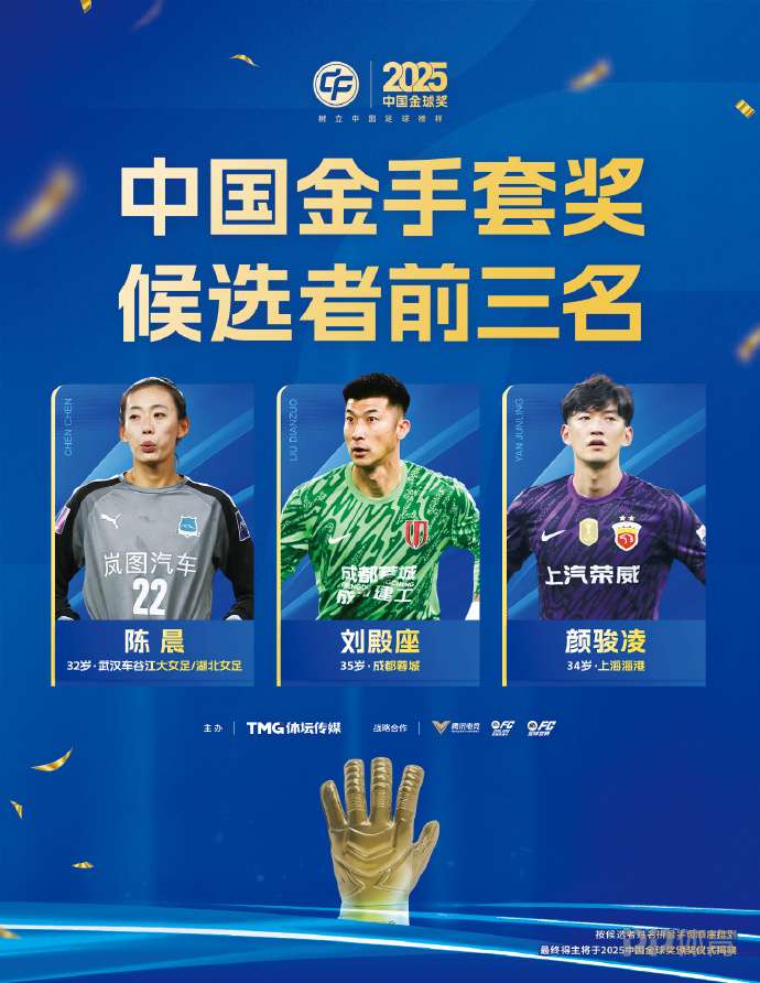 金手套獎(jiǎng)前三名是陳晨、劉殿座、顏駿凌