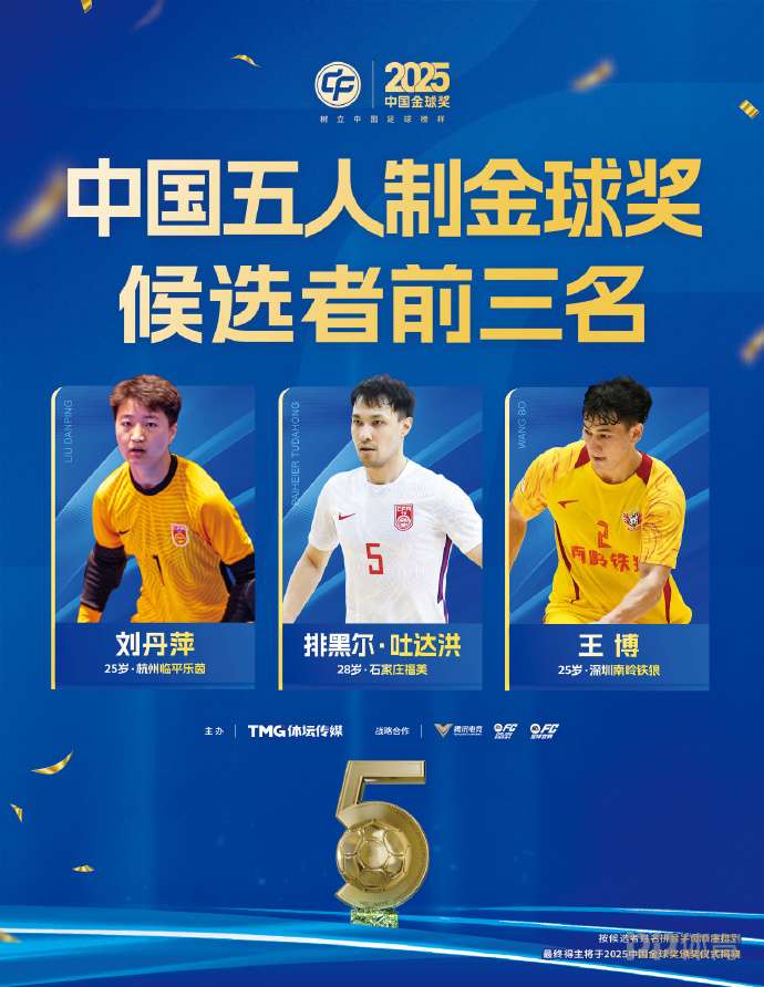 五人制金球獎(jiǎng)前三是劉丹萍、排黑爾·吐達(dá)洪與王博