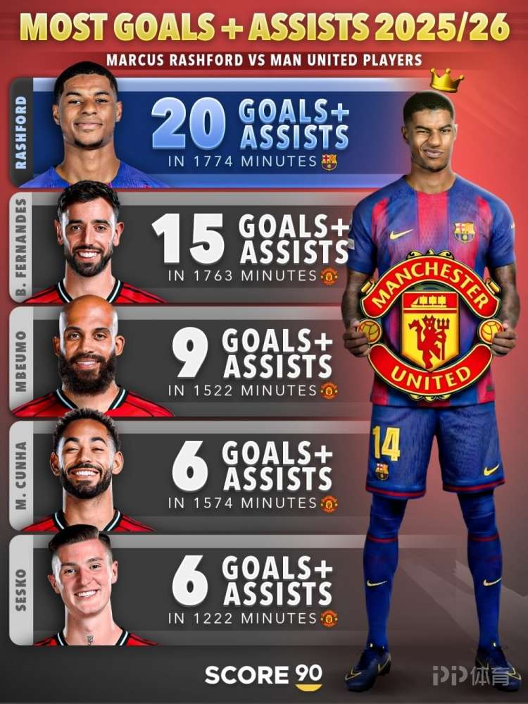 據(jù)Score90統(tǒng)計(jì),拉什福德本賽季參與20粒進(jìn)球,參與進(jìn)球數(shù)量多于任何曼聯(lián)球員。