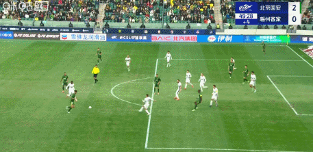 第45+4分鐘,王剛助攻法比奧頭槌打入聯(lián)賽第26球,國安2-0梅州