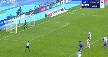 第45+8分鐘,王獻(xiàn)鈞手球送點(diǎn),吳曦一蹴而就,申花客場2-0領(lǐng)先津門虎