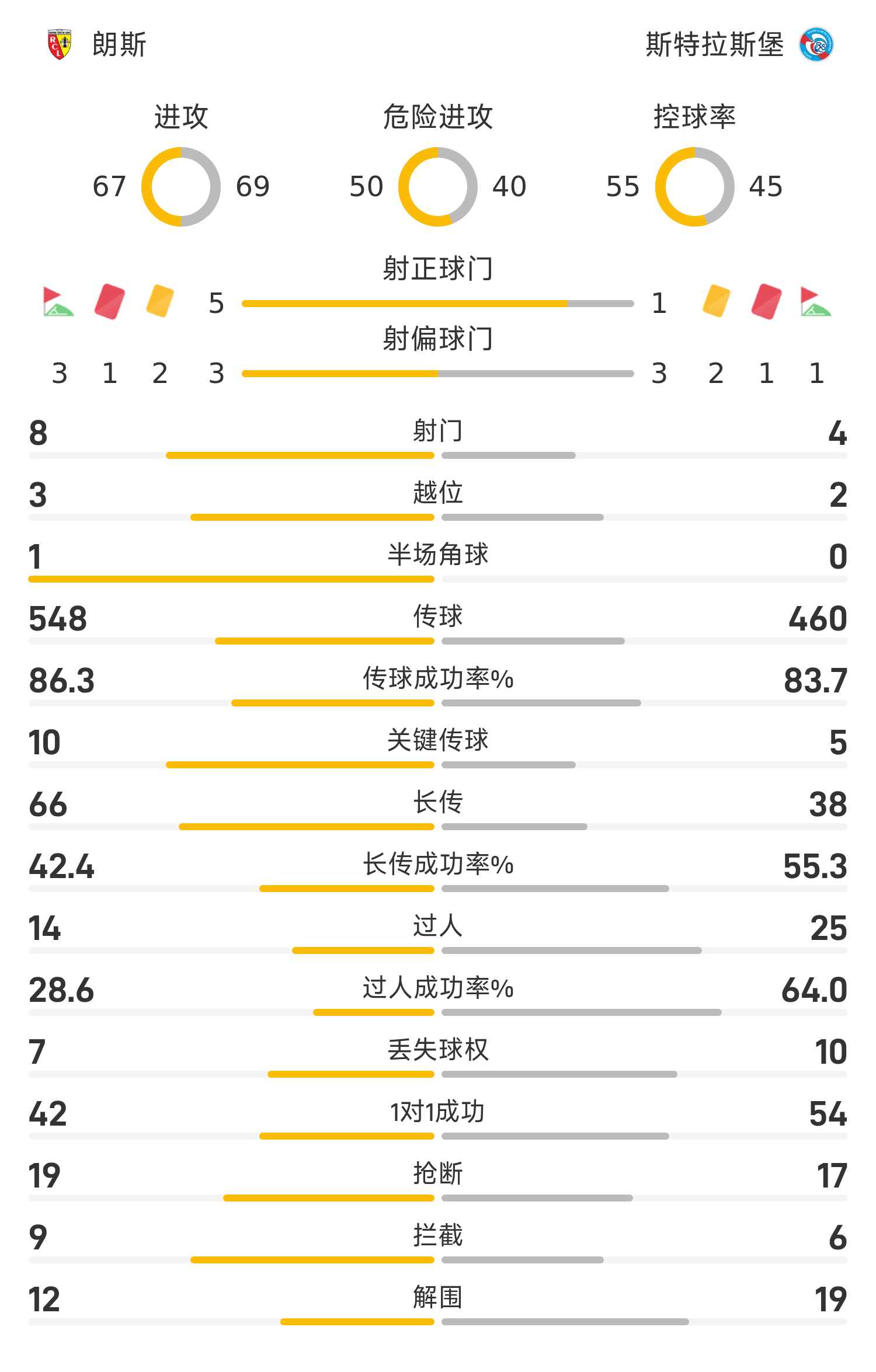 雷速體育11月23日訊 25/26賽季法甲聯(lián)賽第13輪,朗斯1-0戰(zhàn)勝斯特拉斯堡。全場比賽,甘奧破門建功,巴爾科、吉拉沃吉染紅。