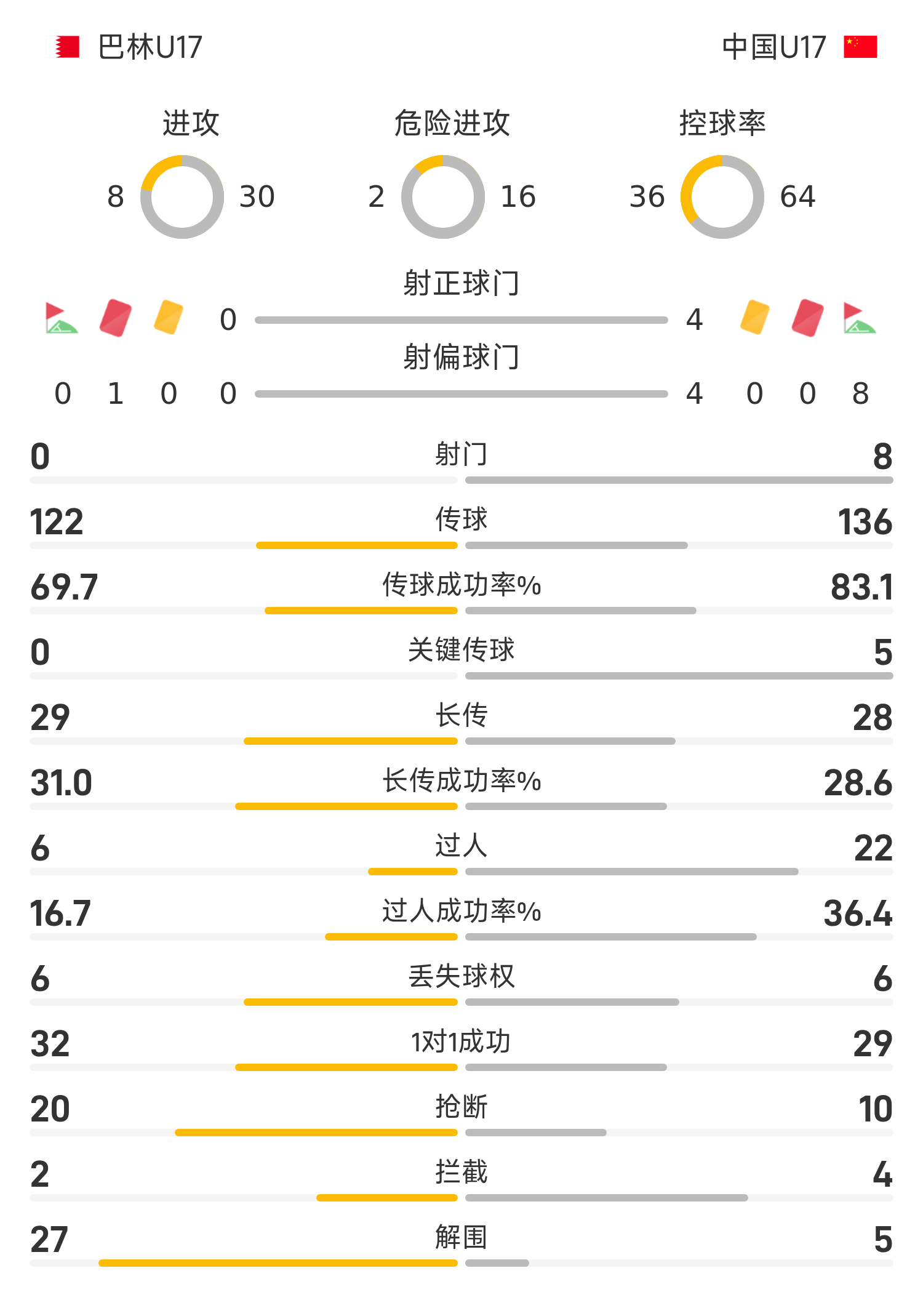 中國U17首發(fā)陣容:1-秦子牛、5-李鈞鵬、8-張旭堯、4-南子勛、6-金昱成、10-鄺兆鐳、19-萬項、11-何思凡、18-徐正鵬、7-周雨諾、21-帥惟浩