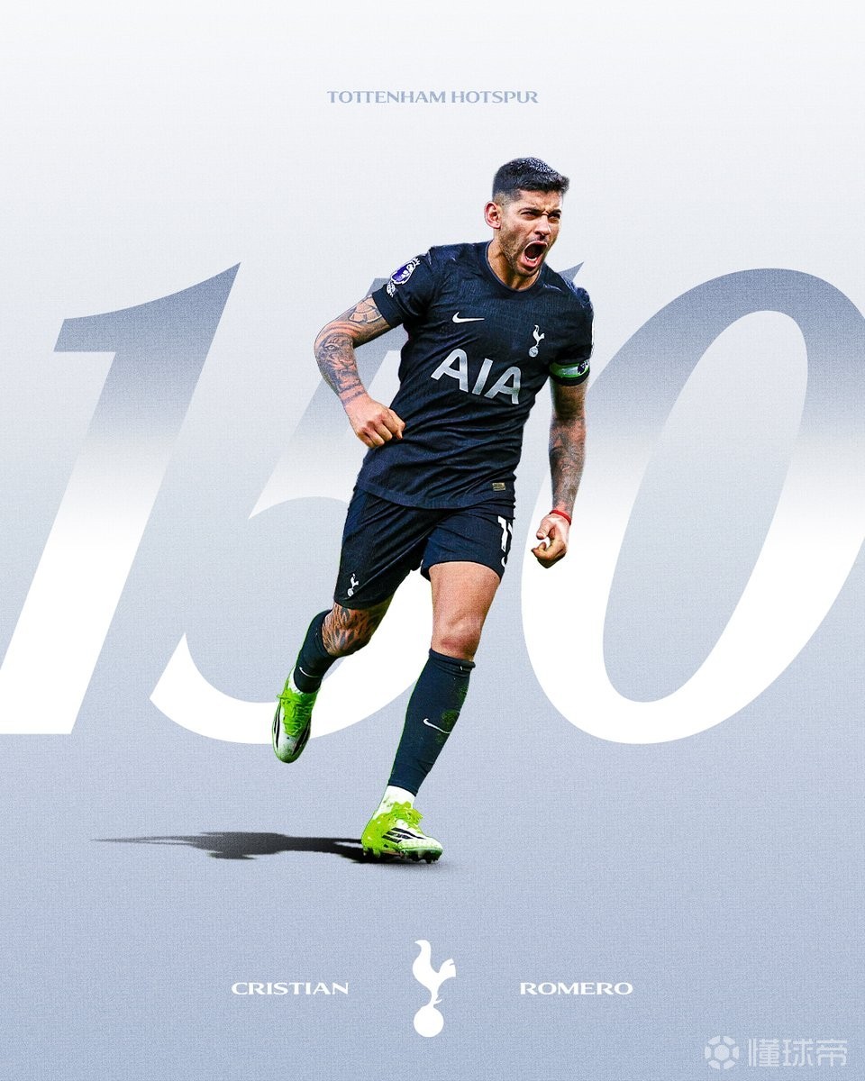 此役歐冠客場對陣法蘭克福,羅梅羅首發(fā)出戰(zhàn),迎來熱刺生涯各項賽事第150次出場。