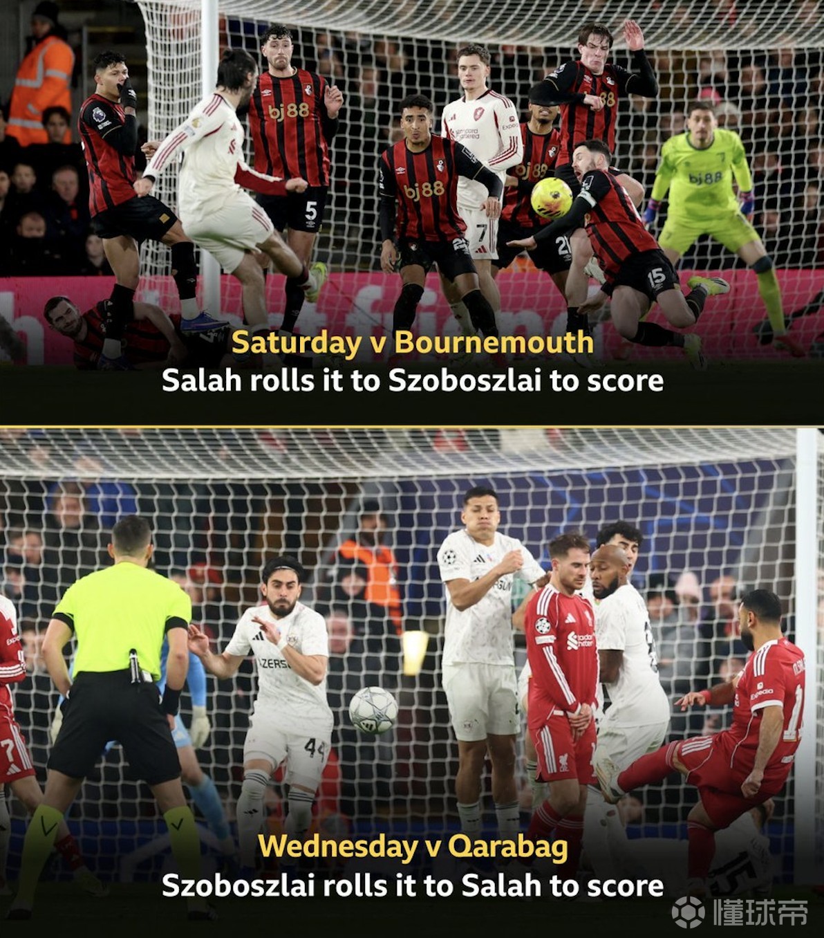上周末英超客場(chǎng)對(duì)陣伯恩茅斯,在一次任意球進(jìn)攻中,薩拉赫做球,索博斯洛伊完成破門(mén)。