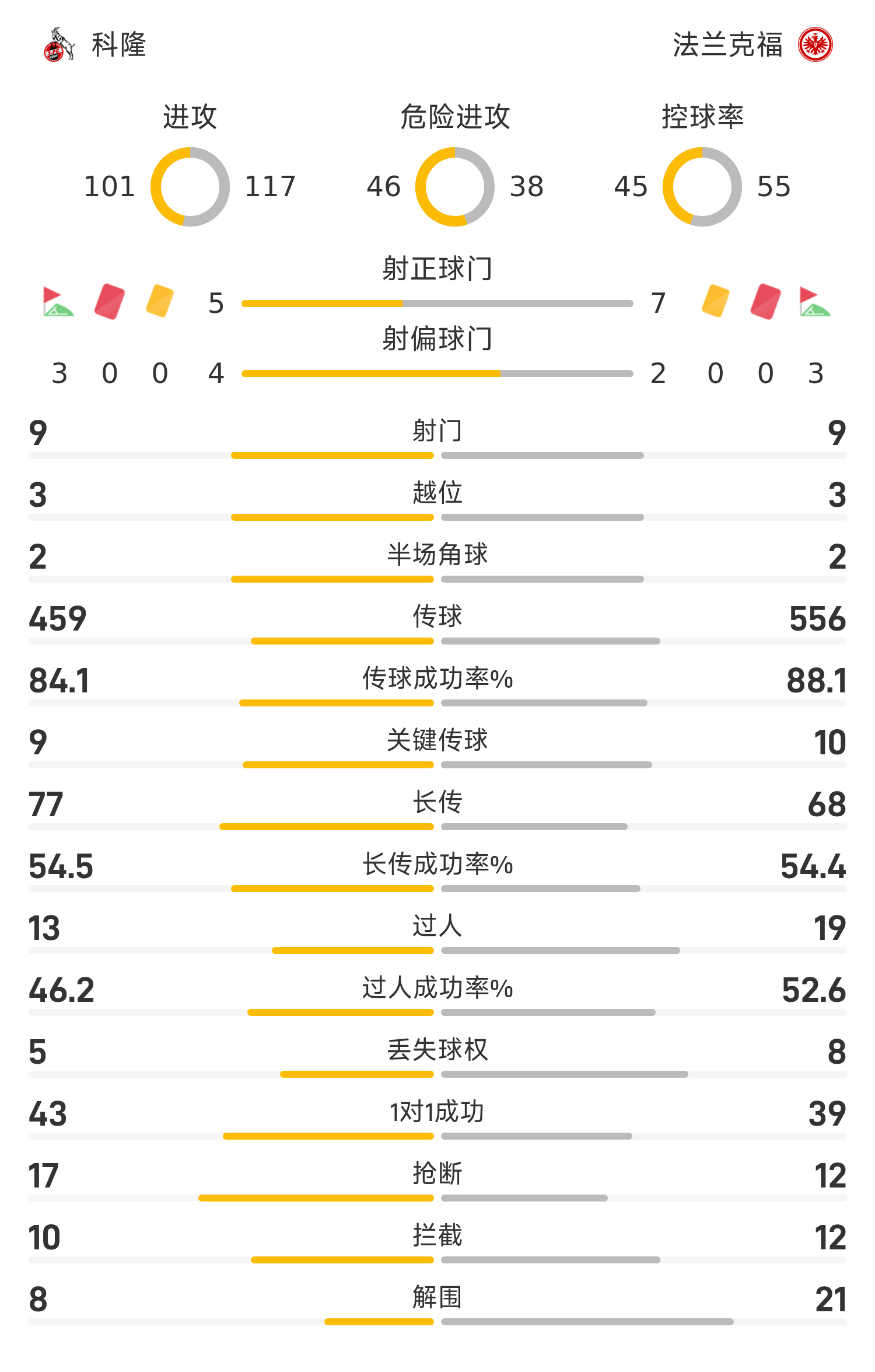 45+6’查比射門被撲,達(dá)胡德補(bǔ)射得手,法蘭克福2-1反超科隆
