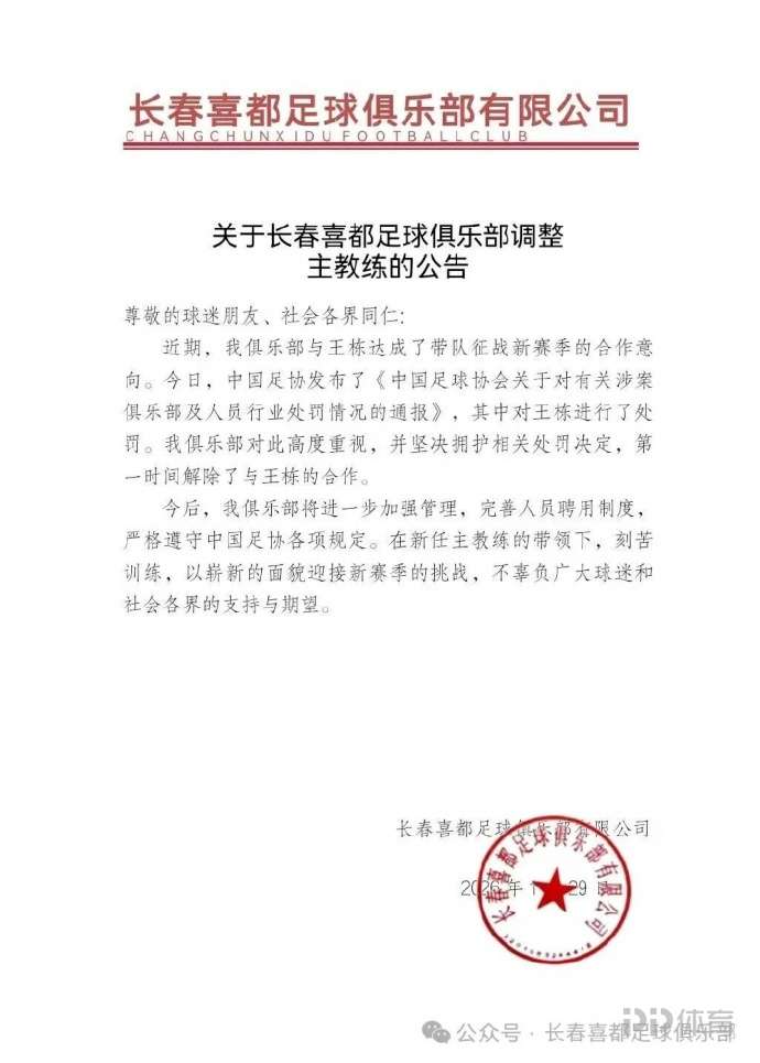 長春喜都官方發(fā)布公告,第一時間和王棟解除了合作。 ???