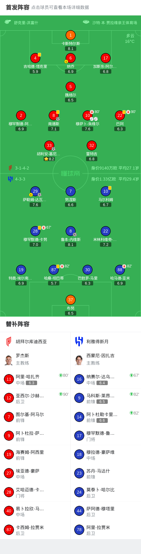 北京時(shí)間1月30日沙特阿拉伯聯(lián) 聯(lián)賽 第19輪,胡拜爾庫迪西亞主場(chǎng)對(duì)陣?yán)诺眯略隆:轄枎斓衔鱽喣系滤蛊崎T,胡利安-基尼奧內(nèi)斯破門。利雅得新月魯本-內(nèi)維斯破門,薩勒姆-達(dá)瓦薩里破門。最終比分胡拜爾庫迪西亞 2-2 利雅得新月。