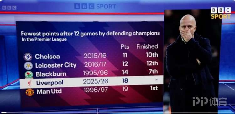 英超第12輪比賽,利物浦主場0-3不敵諾丁漢森林。利物浦本賽季英超前12輪比賽僅積18分,成為英超歷史同期積分第四少的衛(wèi)冕冠軍。