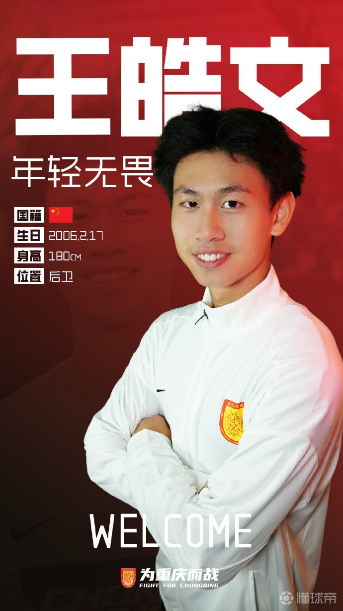 俱樂部相信,王皓文的加盟將進一步充實球隊的年輕陣容,為防線注入新的活力。期待他能快速融入球隊,以拼搏姿態(tài)詮釋 “堅韌、忠勇、開放、爭先” 的重慶城市精神,與全隊一同為重慶足球的榮耀而戰(zhàn)