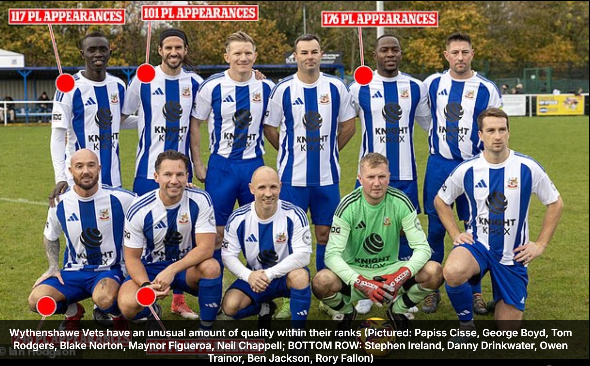 近日,據(jù)《每日郵報》報道,一支匯聚了多名前英超退役球員的周日聯(lián)賽球隊,未來或許將迎來一位新的超級明星。目前征戰(zhàn)柴郡老將足球聯(lián)賽的威森肖鎮(zhèn)老將隊(Wythenshawe-FC-Vets),在過去幾個月里迅速走紅網(wǎng)絡。這支球隊陣中球員合計擁有超過1800場英超出場經驗。