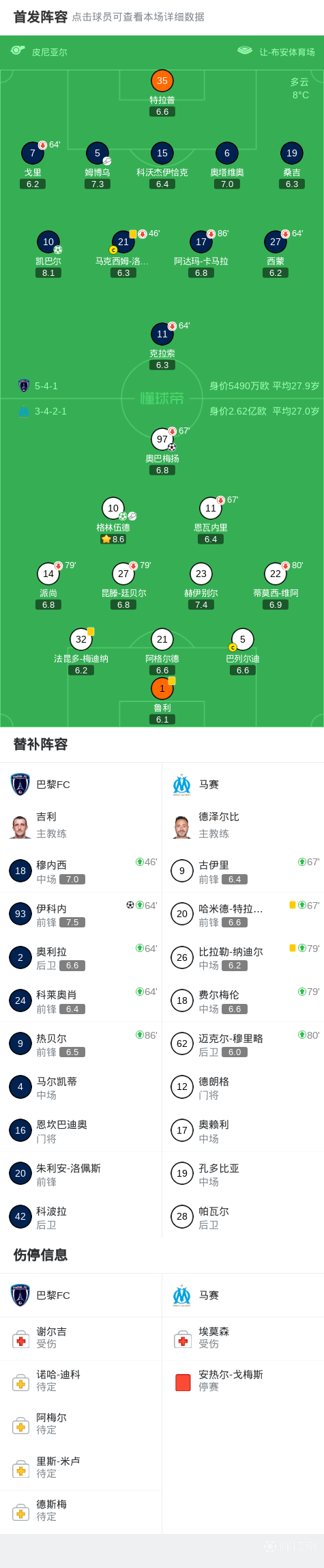 北京時(shí)間2月1日法國(guó)足球頂級(jí)聯(lián)賽 聯(lián)賽 第20輪,巴黎FC主場(chǎng)對(duì)陣馬賽。上半場(chǎng)格林伍德造點(diǎn),隨后親自主罰命中。下半場(chǎng)格林伍德送助攻,奧巴梅揚(yáng)輕松破門,之后伊科內(nèi)頭球破門扳回一球,補(bǔ)時(shí)階段魯利送點(diǎn),凱巴爾主罰命中。最終巴黎FC連追兩球2-2戰(zhàn)平馬賽。