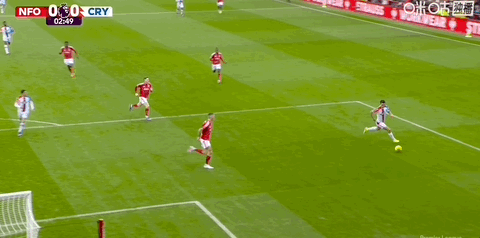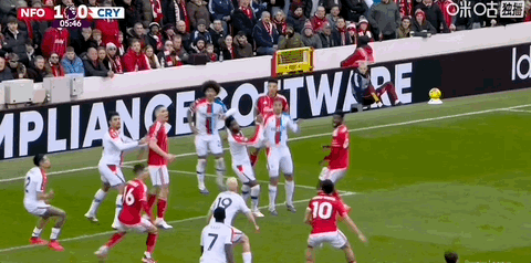 第5分鐘,懷特亂戰(zhàn)中推射近角破門,諾丁漢森林1-0領(lǐng)先水晶宮