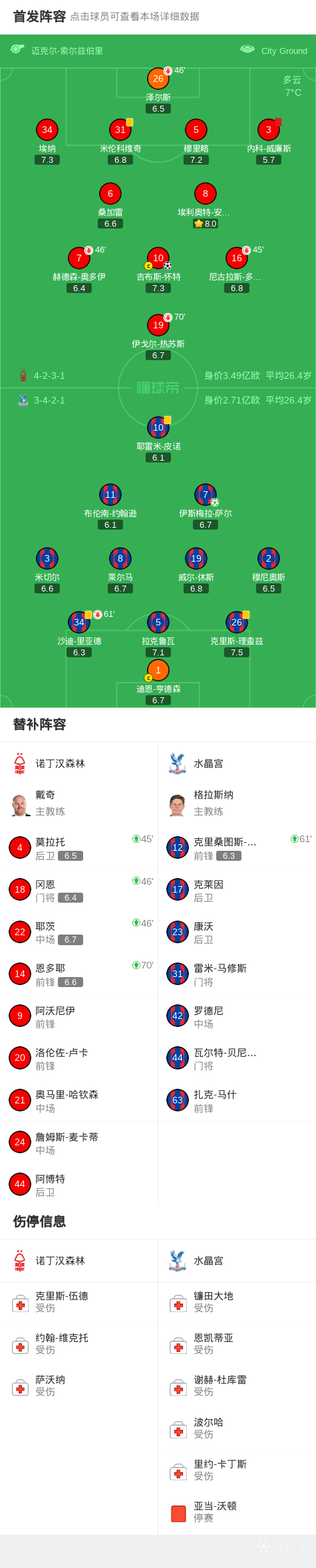 第2分鐘,水晶宮連續(xù)兩腳打門,均被森林后衛(wèi)和門將擋出