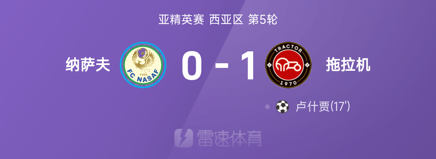 亞精英賽戰(zhàn)報(bào):盧什賈破門制勝,拖拉機(jī)1-0戰(zhàn)勝納薩夫