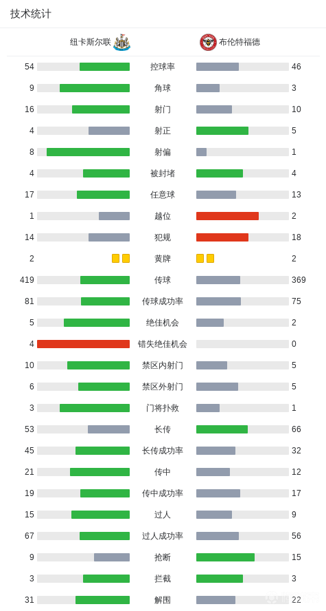 第23分鐘,紐卡率先打破僵局,博特曼頭槌破門,紐卡1-0布倫特福德