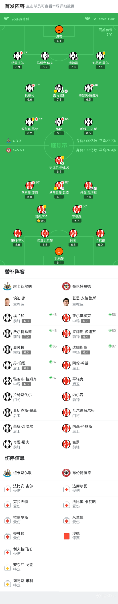 第36分鐘,瓦塔拉助攻,雅內(nèi)爾特頭球頂進,紐卡1-1布倫特福德