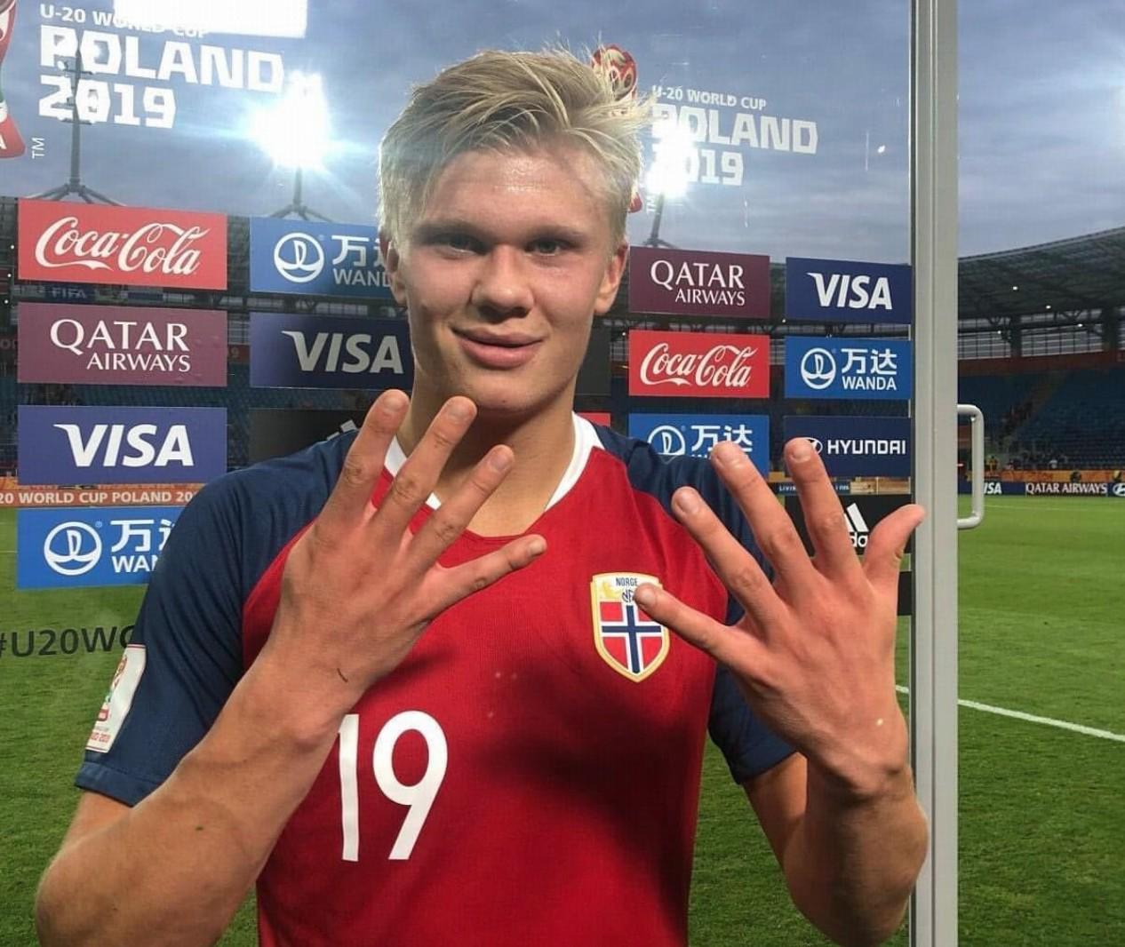 2019年5月30日,U20世界杯小組賽第三輪,挪威12-0狂勝洪都拉斯,當(dāng)時未滿19歲的哈蘭德單場9球,這幾乎是足球世界第一次記住他的名字。隨后,哈蘭德迅速進(jìn)入了世界最強(qiáng)中鋒行列。
