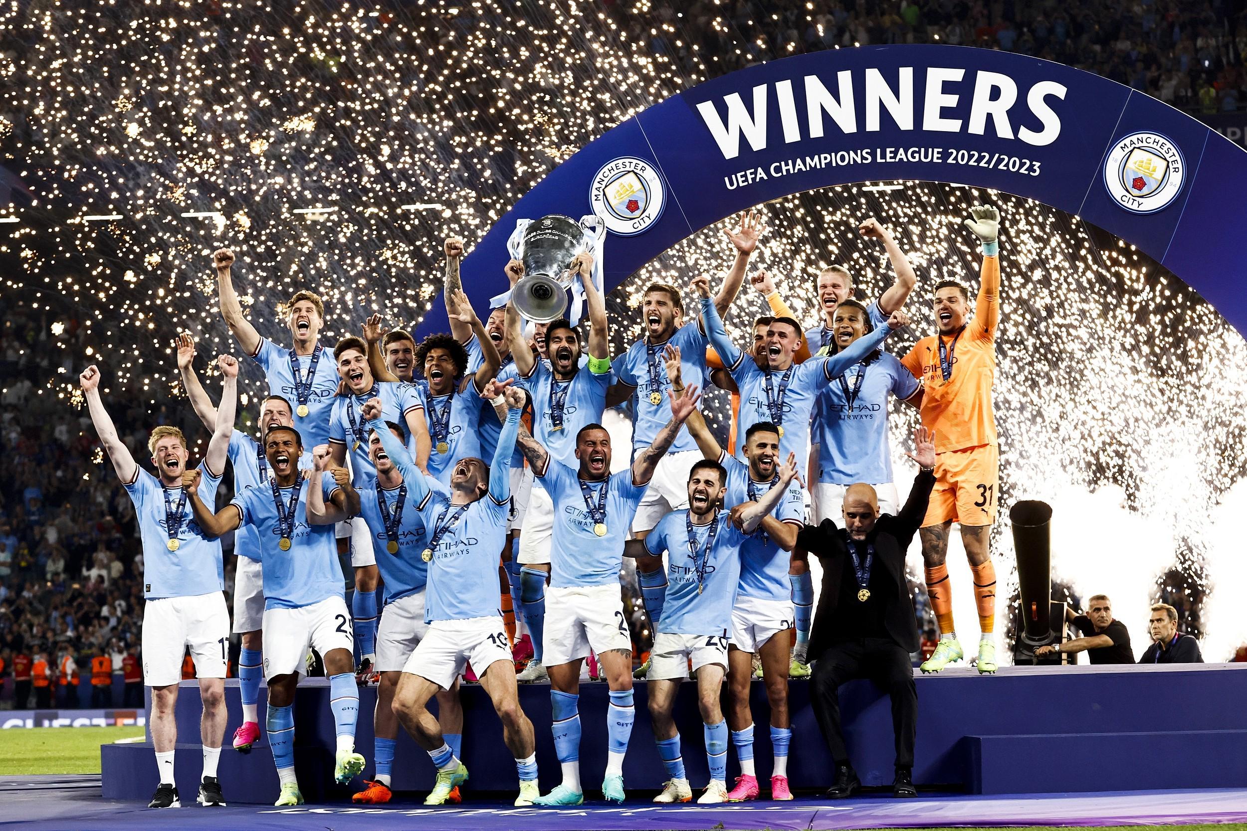 2023年6月10日,歐冠決賽,曼城憑借羅德里的進(jìn)球1-0小勝國米,歷經(jīng)兩年前的決賽失利后,隊史首次贏得歐冠冠軍!曼城加冕賽季三冠王,瓜迪奧拉時隔14年再次成為三冠王主帥。