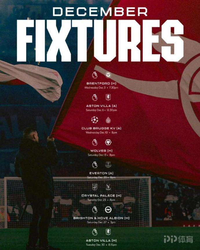 阿森納俱樂部在官方社交媒體曬出一張12月賽程海報,展示球隊年底的比賽安排。配文:讓我們用精彩的表現(xiàn)為2025畫上句號。