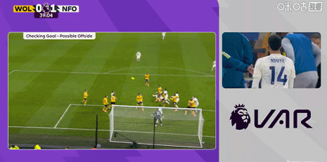 第43分鐘,熱蘇斯破門,但是主裁觀看回放認定恩多耶越位干擾門將無效
