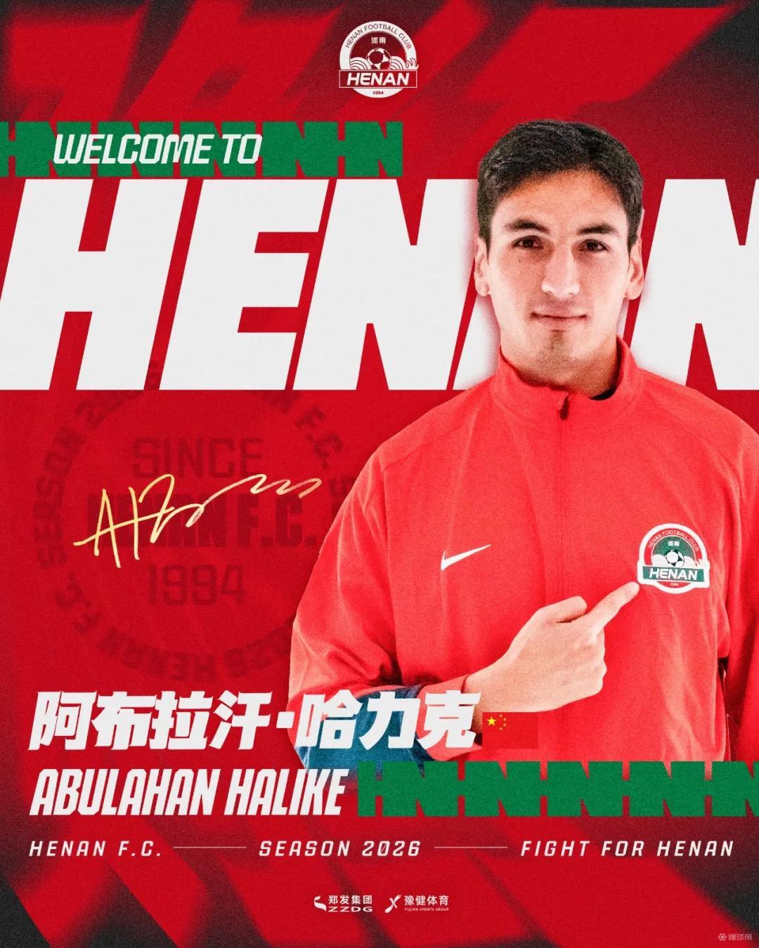 歡迎阿布拉汗-哈力克回家,加入河南大家庭,期待你快速融入球隊(duì),與全體將士并肩作戰(zhàn),為河南足球拼下更多榮耀!