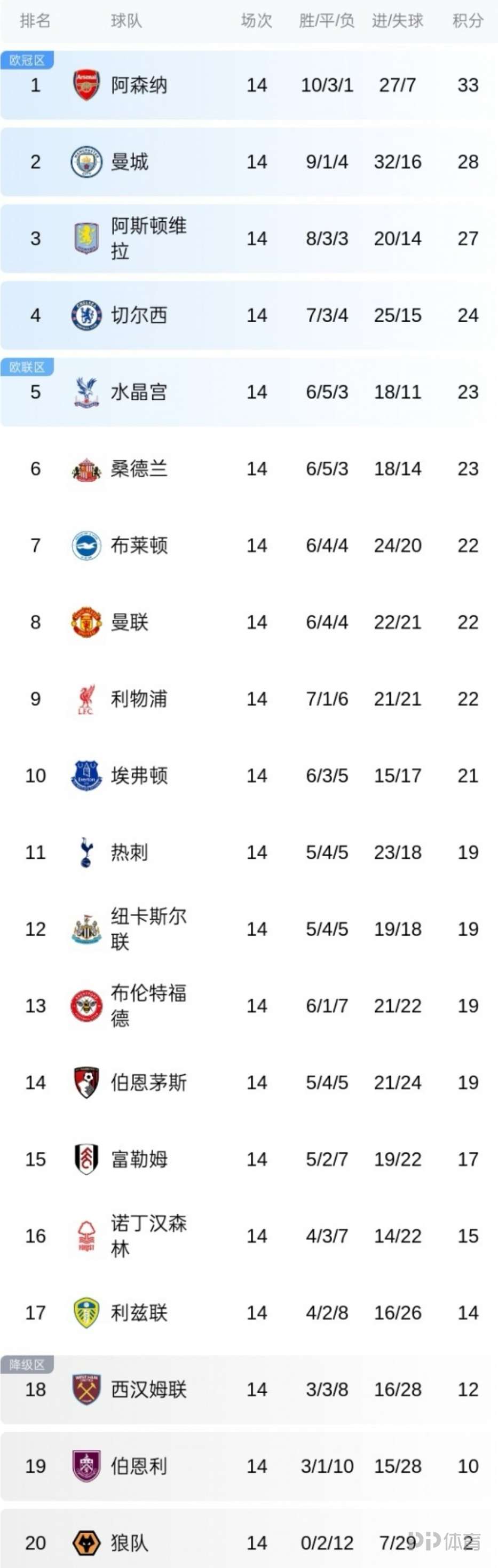 英超第14輪比賽戰(zhàn)罷,曼聯(lián)1-1西漢姆聯(lián),沒(méi)能成功升至前5。目前曼聯(lián)以1個(gè)凈勝球的優(yōu)勢(shì)位居第8,利物浦降至第9。