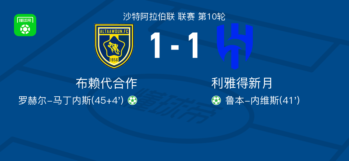北京時間2月25日沙特阿拉伯聯(lián) 聯(lián)賽 第10輪,布賴代合作主場對陣利雅得新月。布賴代合作羅赫爾-馬丁內(nèi)斯破門。利雅得新月魯本-內(nèi)維斯破門。最終比分布賴代合作 1-1 利雅得新月。