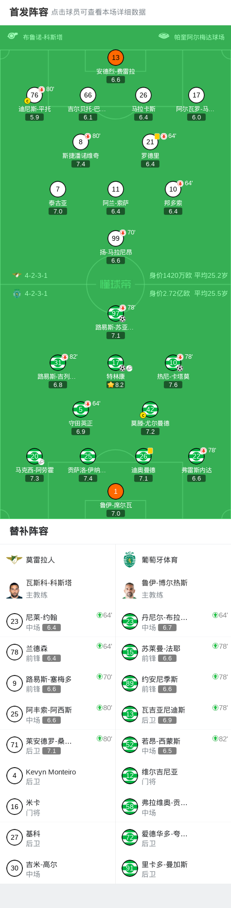 北京時(shí)間2月22日葡萄牙足球超級(jí)聯(lián)賽 聯(lián)賽 第23輪,莫雷拉人主場(chǎng)對(duì)陣葡萄牙體育。葡萄牙體育特林康破門,熱尼-卡塔莫破門,路易斯-蘇亞雷斯破門。最終比分莫雷拉人 0-3 葡萄牙體育。