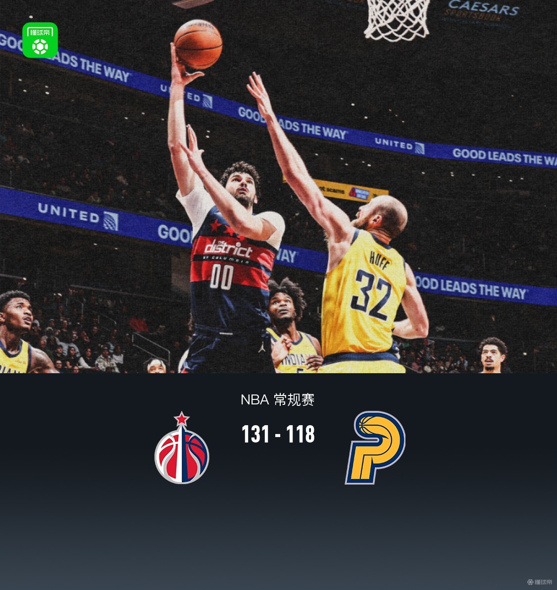 第四節(jié)奇才阿隆德斯-威廉姆斯拿下11分,步行者邁卡-波特拿下7分,最終奇才131-118戰(zhàn)勝步行者