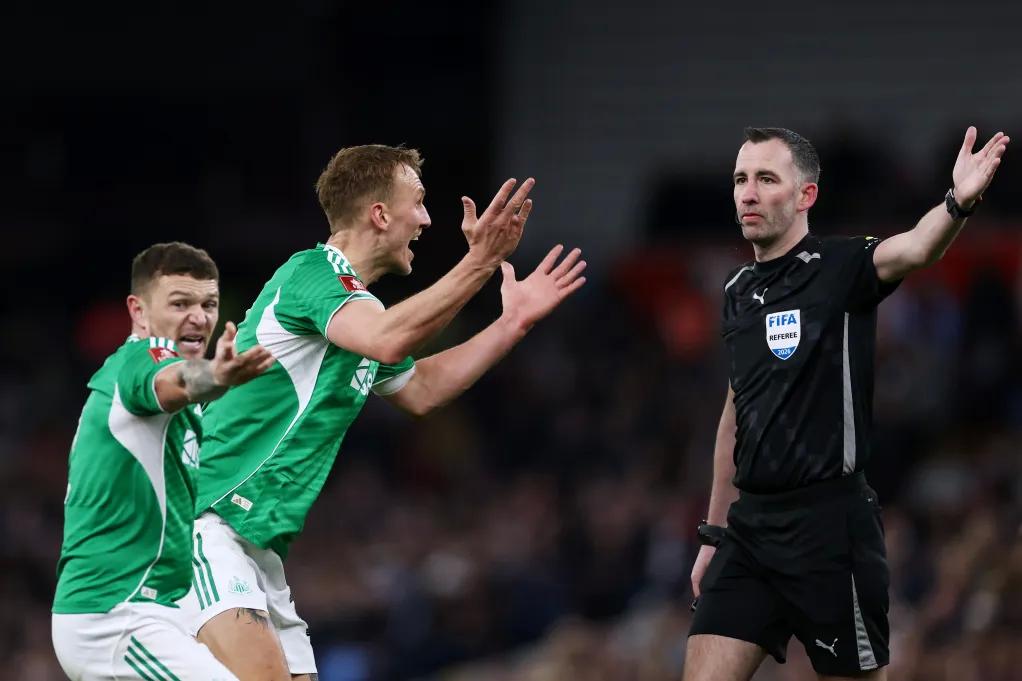 2月14日,在維拉公園舉行的足總杯第四輪的比賽中,紐卡斯?fàn)栔鲙洶5?豪和阿斯頓維拉主帥埃梅里,均對(duì)裁判團(tuán)隊(duì)的執(zhí)法表現(xiàn)提出了批評(píng),這也引發(fā)了新一輪關(guān)于VAR影響的激烈爭(zhēng)論。不少人質(zhì)疑,如今的裁判是否已經(jīng)失去了在沒(méi)有“VAR后備舒適毯”加持的情況下,獨(dú)立做出正確判罰的能力。要知道,足總杯第三輪和第四輪的比賽,是不啟用VAR輔助執(zhí)法的。