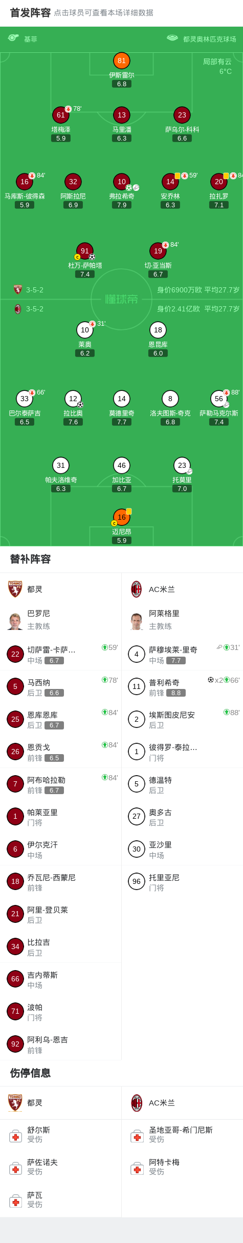 北京時(shí)間12月9日3:45,意甲第14輪繼續(xù)進(jìn)行,AC米蘭作客都靈奧林匹克球場(chǎng)挑戰(zhàn)都靈,本場(chǎng)主裁判為基菲。上半場(chǎng),托莫里手球送點(diǎn),弗拉希奇主罰點(diǎn)球命中后又助攻薩帕塔破門,緊接著,拉比奧重炮世界波扳回一城,萊奧傷退。下半場(chǎng),普利希奇替補(bǔ)登場(chǎng)連下兩城力挽狂瀾。最終,米蘭讓二追三3-2逆轉(zhuǎn)都靈。