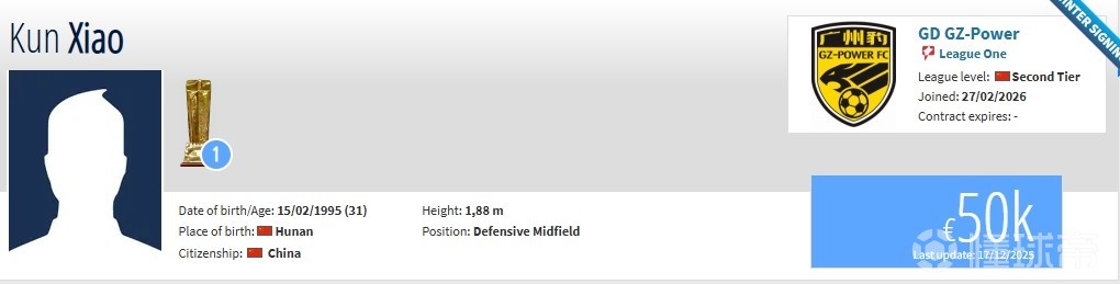 北京時(shí)間2月27日,德轉(zhuǎn)更新,廣東廣州豹簽下原青島海牛中場(chǎng)肖鯤,租借浙江隊(duì)中場(chǎng)王俊杰。