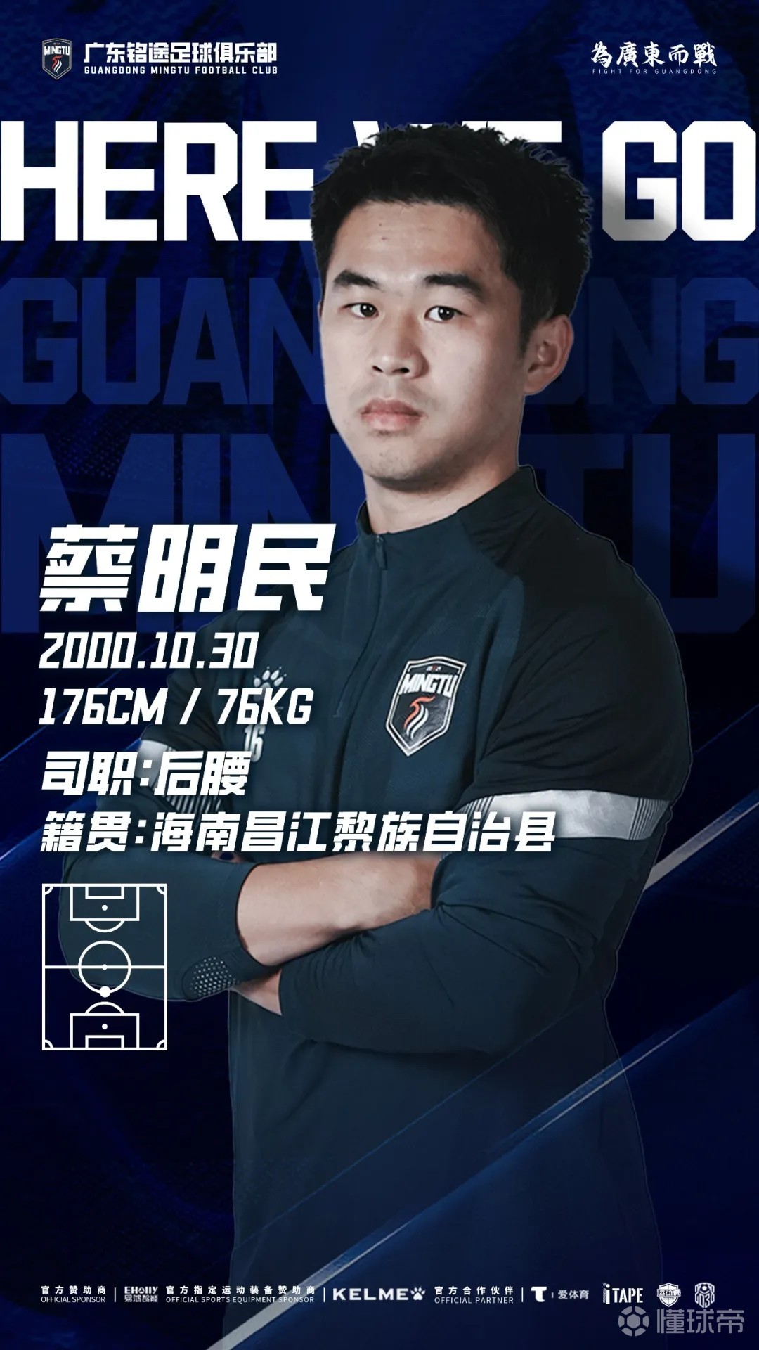 為進一步提升球隊在賽場上的綜合競爭力,并與球員本人充分協(xié)商一致,蔡明民即日起正式加盟廣東銘途足球俱樂部一線隊。
