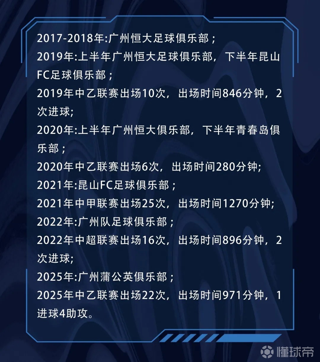 蔡明民司職后腰,出自廣州恒大青訓(xùn)體系,長期接受系統(tǒng)化、職業(yè)化的訓(xùn)練,技術(shù)基礎(chǔ)扎實,比賽理解成熟。進入職業(yè)賽場后,他在不同階段、不同球隊中持續(xù)適應(yīng)多樣化的戰(zhàn)術(shù)體系與比賽強度,在競爭中完成成長,也在實戰(zhàn)中不斷校準(zhǔn)自身定位。從中乙到更高水平聯(lián)賽的歷練,使他在節(jié)奏把控、位置選擇與比賽穩(wěn)定性方面逐步形成個人特點。