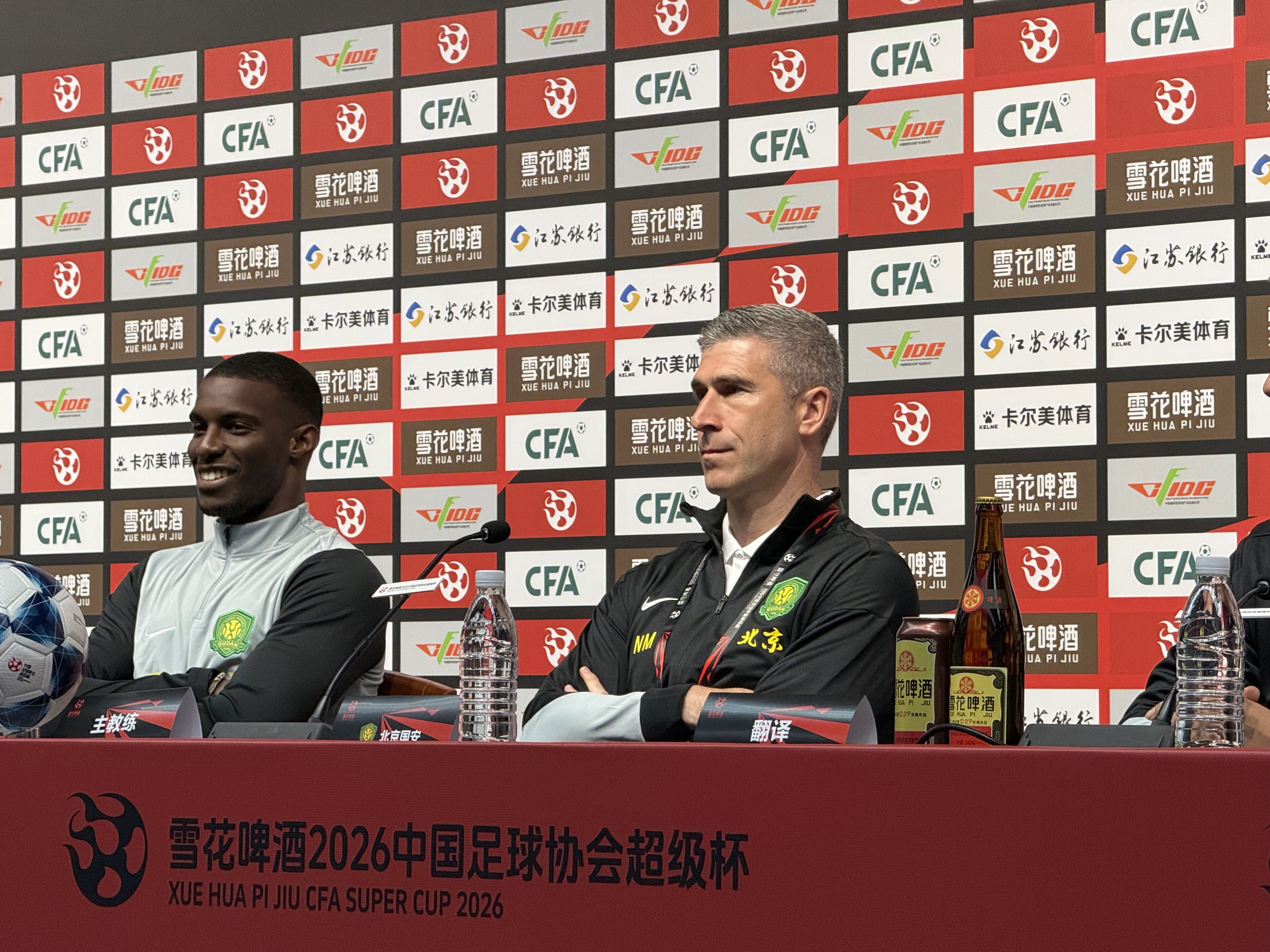 在賽前新聞發(fā)布會上,北京國安隊主教練蒙哥馬利和法比奧先是跟在場的記者開了個玩笑,氣氛十分輕松。而蒙哥馬利與法比奧則是都強調(diào),球隊非常重視且期待明天的比賽。