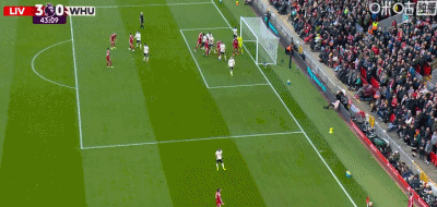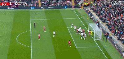 第75分鐘,西漢姆聯(lián)右側(cè)角球機(jī)會,鮑文將球開出,后點(diǎn)卡斯特拉諾斯頭球攻門得手,西漢姆聯(lián)2-4利物浦。