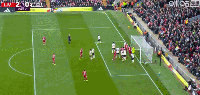 第24分鐘,利物浦右側(cè)角球機(jī)會,索博斯洛伊將球罰向門前,小禁區(qū)內(nèi)范戴克高高躍起頭球攻門得手,VAR介入,確認(rèn)進(jìn)球有效,利物浦2-0西漢姆聯(lián)。